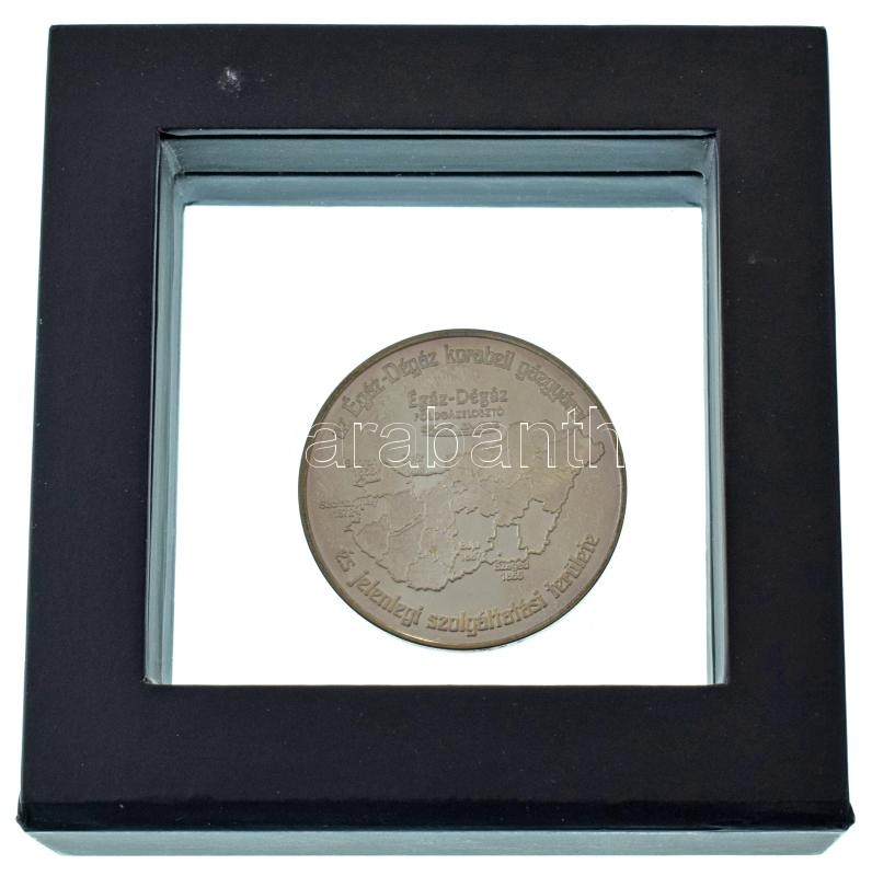 Fritz Mihály (1947-) DN "Égáz-Dégáz Földgázelosztó Zrt. emlékérme / Az Égáz-Dégáz korabeli gázgyárai és jelenlegi szolgáltatási területe" peremén jelzett Ag emlékérem dísztokban (34,20g/0.925/42,5mm) T:AU (eredetileg PP) patina, folt