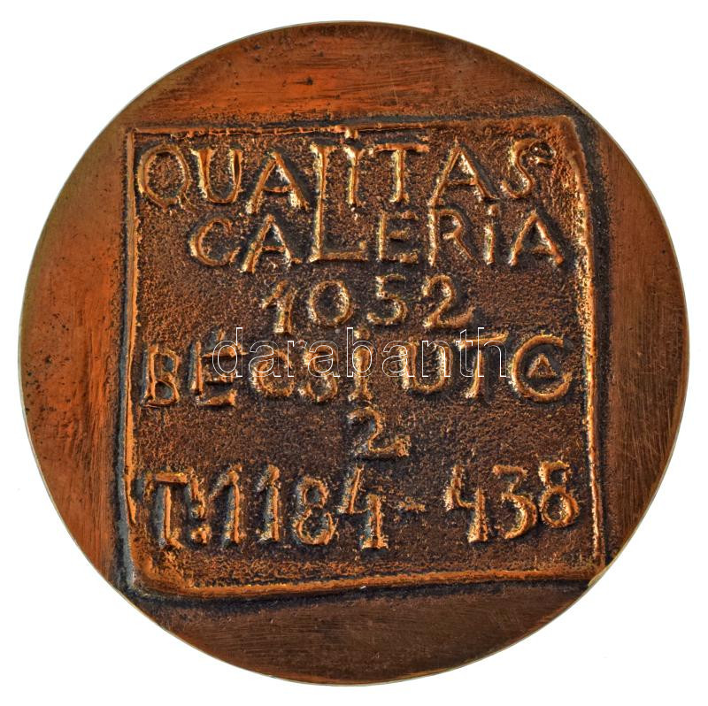 Kő Pál (1941-2020) 1989. "Qualitas Galéria 1052 Bécsi utca 2. T:1184-438" kétoldalas öntött bronz névjegyérem eredeti tokban Szign.:KŐ (51mm) T:AU