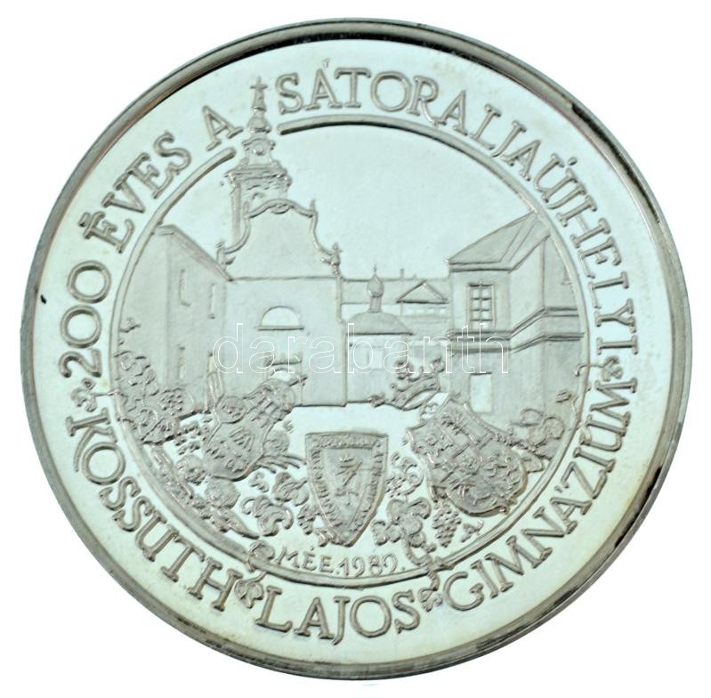 Sebestyén Sándor (1949-2010) 1989. "MÉE - 200 éves a sátoraljaújhelyi Kossuth Lajos Gimnázium / '... Én is a növendékük voltam...' 1810-1816" jelzett Ag emlékérem (70,08g/0.835/42,5mm) T:PP ujjlenyomat
