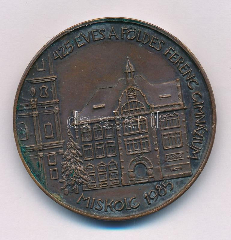 Tóth Sándor (1933-2019) 1985. "425 éves a Földes Ferenc Gimnázium, Miskolc 1985" kétoldalas bronz emlékérem (42,5mm) T:XF patina
