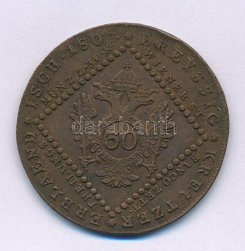 Leírás: 1807S 30kr Cu "I. Ferenc" Szomolnok T:VF patina