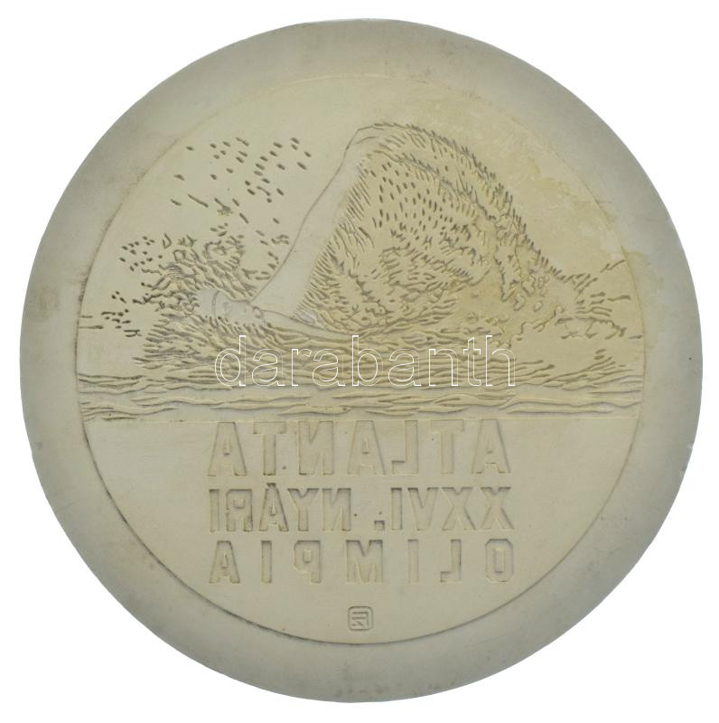 1994. 200Ft/1000Ft "XXVI. Nyári Olimpia Atlanta" érmetervezet gipsz hátlapi NEGATÍV nagyminta (160mm) T:AU