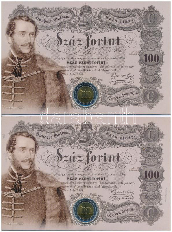 2002. 100Ft "Kossuth" (2x) elsőnapi veretek, sorszámkövető d... https://www.darabanth.com/hu/515-Filatelia-kepeslap-numizmatika-mutargy-konyv-papirregiseg-ekszer-aukcio/518.0/Numizmatika/Magyar-es-magyar-verdejelu-fem-es-ezustpenzek~666/2002-100Ft-Kossuth-2x-elsonapi-veretek-sorszamkoveto-diszlapokon-011331-011332-TUNC~II3485711