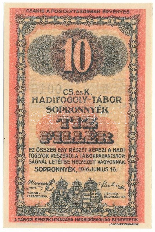 Leírás: 1916. Sopronnyék / Hadifogolytábor 1916. június 16. 10f arab sorozat- és sorszámmal "6 0016" T:AU