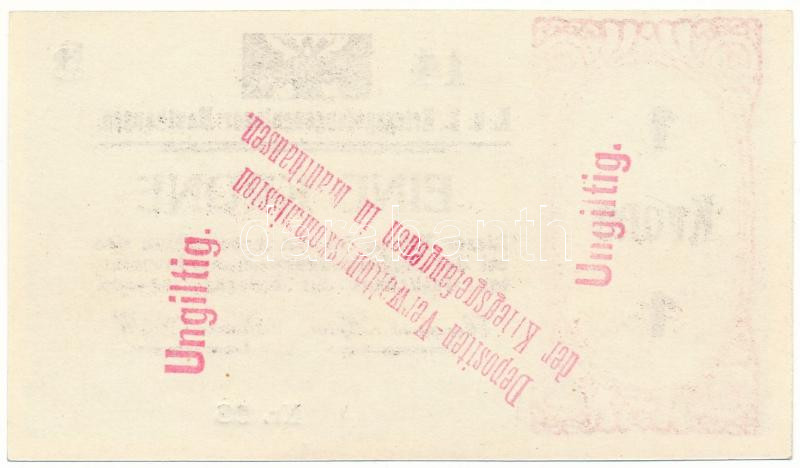 Austria / Mauthausen / POW camp ~1914-1918. 1 Krone "UNGILTIG (invalid)" overprint on the back C:UNC,AU