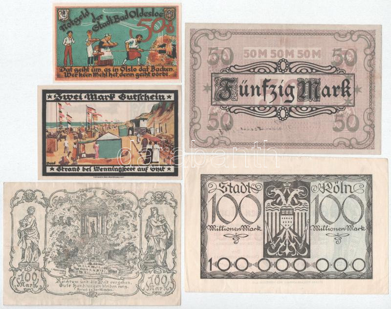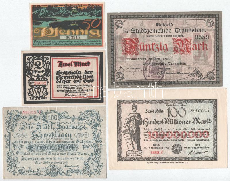 Leírás: Német Birodalom / Weimari Köztársaság 1919-1923. 5xklf papír szükségpénz-tétel T:AU-F