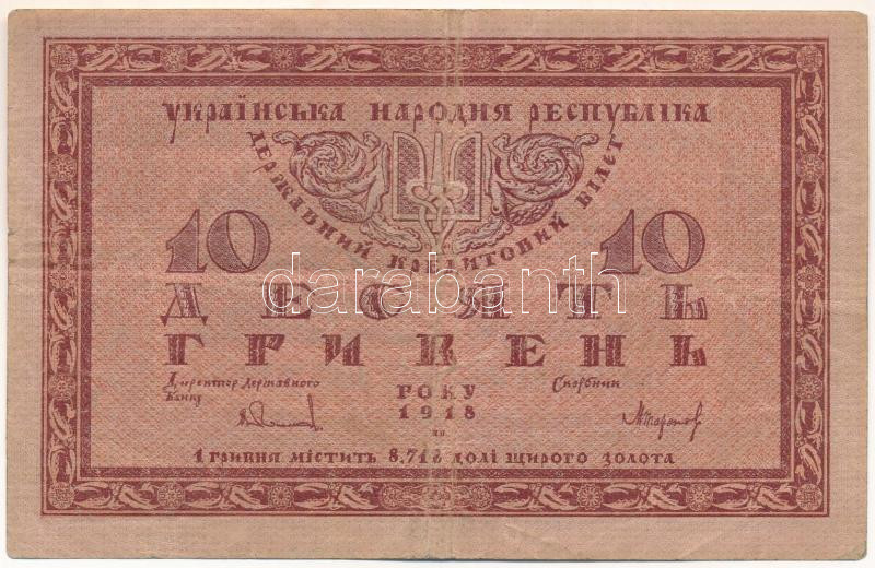 Orosz Polgárháború / Ukrajna 1918. 10 Hrivnya hiteljegy T:F