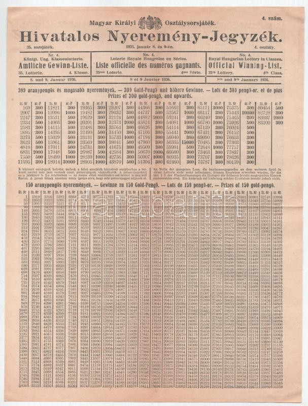 Leírás: 1936. "35. Magyar Királyi Osztálysorsjáték" ötödik osztály egynyolcad sorsjegye, bélyegzéssel, nyeremény-jegyzék melléklettel, elismervénnyel, Gorzó és Társa Bankház hirdetménnyel és borítékkal T:AU,XF
