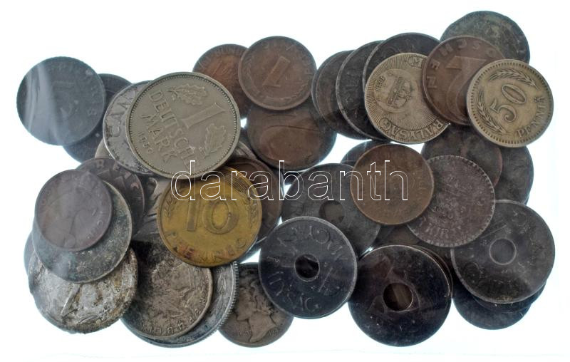 Vegyes 53db-os 1950 előtti kiadású érme tétel, közte: fillér, pfennig, groschen, francs, mark, pengő, cent T:vegyes