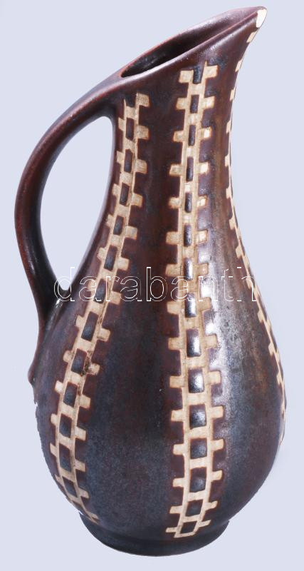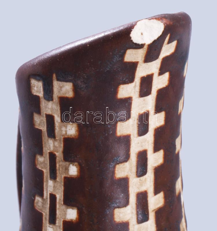 Leírás: Jelzett antik kancsóváza, lepattanással, m: 20 cm