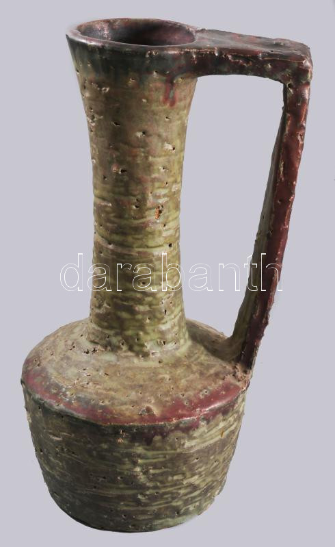 Leírás: Midcentury jelzett iparművész váza, kis mázhibával, m: 24,5 cm