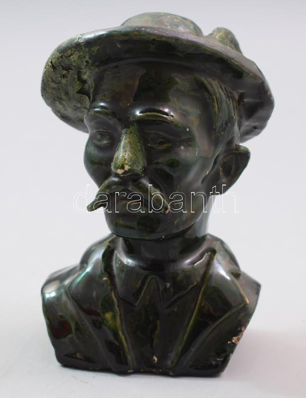 Leírás: Somogyi Árpád (1926-2008): Férfi büszt. Mázas kerámia, sérülésekkel, javított, jelzett, m: 13 cm