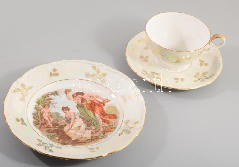 Leírás: Kahla zsánermintás irizáló egyszemélyes reggeliző szett, jelzett, kis kopással, d: 19,5 cm