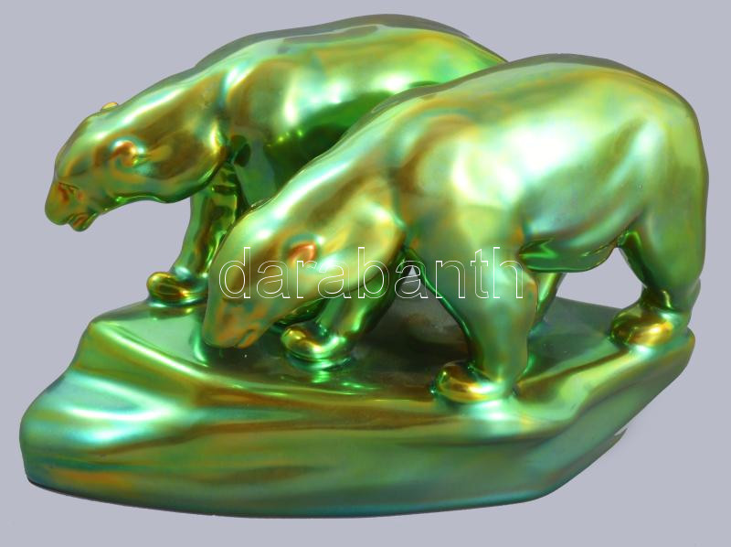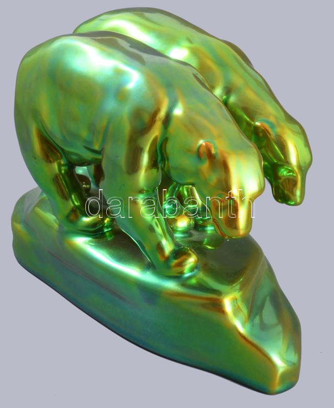 Leírás: Zsolnay eozin mázas jegesmedvepár. Jelzett, hibátlan, 20x12 cm