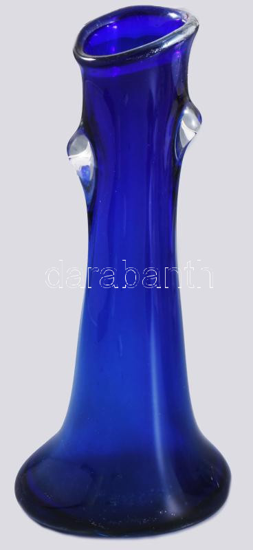 Leírás: Anyagában kéken színezett szakított üveg váza, jelzés nélkül, hibátlan, m: 34,5 cm