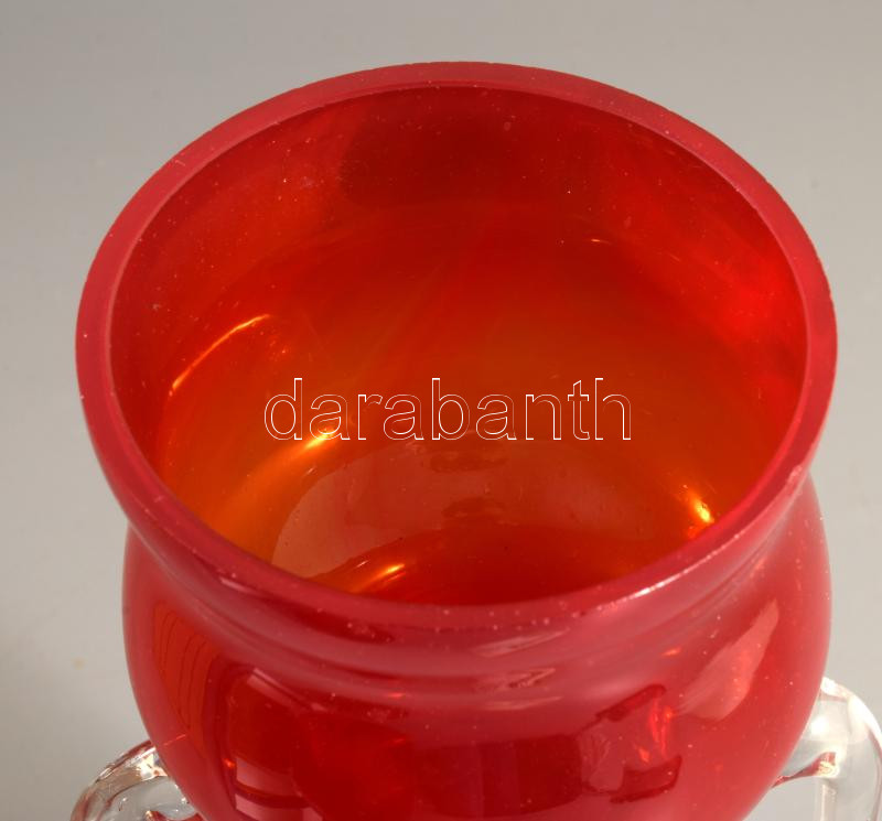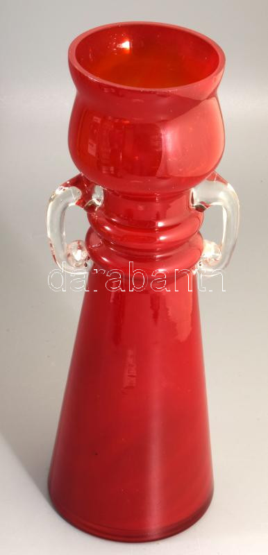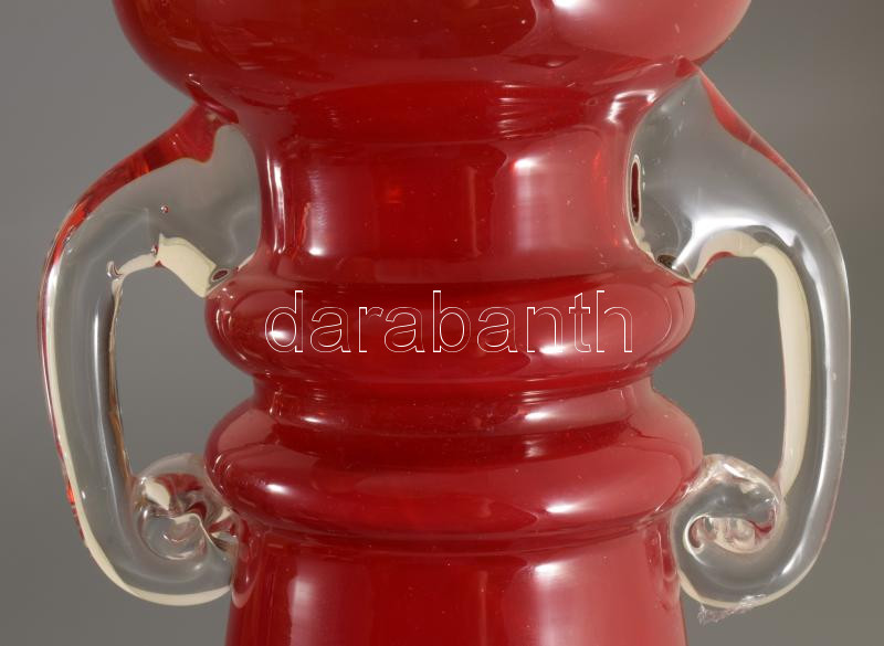 Leírás: Huta Szkła Tarnowiec, Słuczan-Orkusz Jerzy designer: Kétfüles váza. Jelzés nélkül, kis pattogzással, m: 29 cm