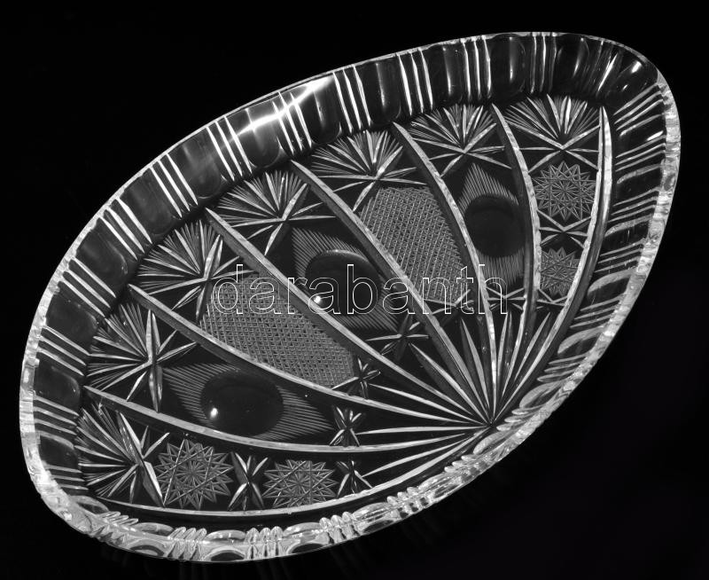 Leírás: Ólomkristály csepp alakú kínáló. Gazdagon díszített, minimális kopással, 31x29 cm