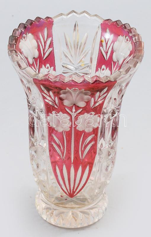 Leírás: Ólomkristály váza pácolt díszítéssel, hibátlan, m: 16 cm