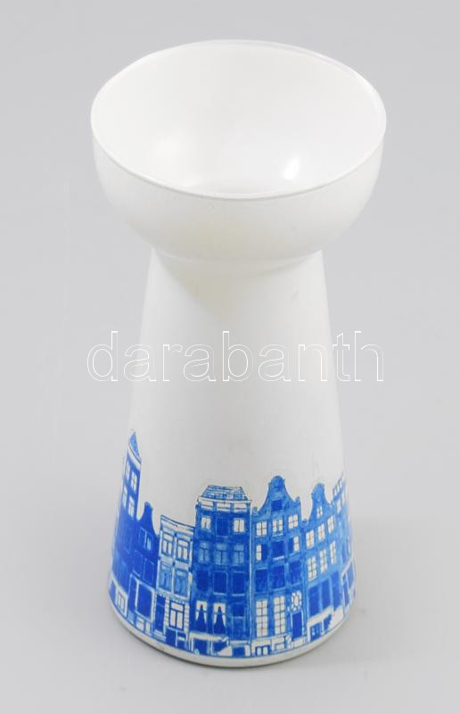 Leírás: Retro városképes üveg váza, festett. 14 cm
