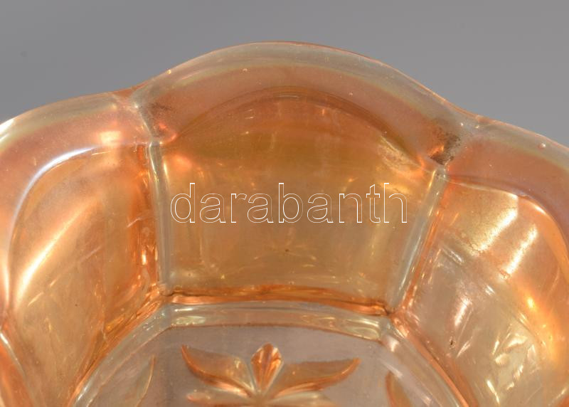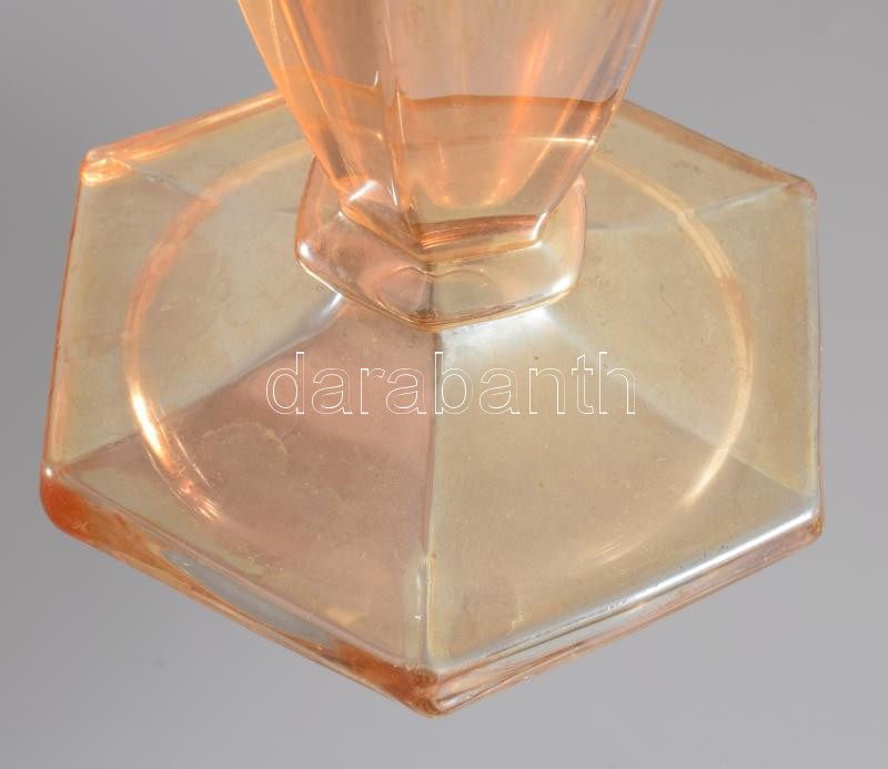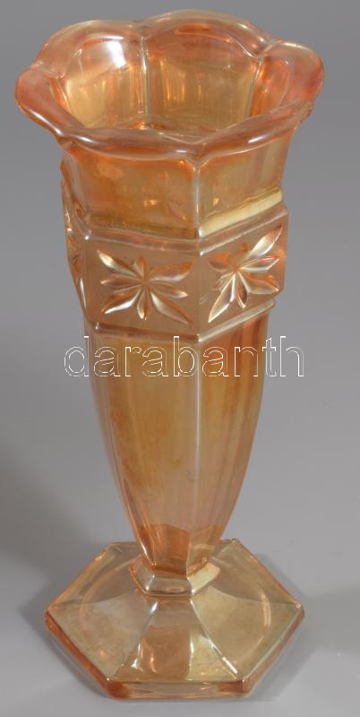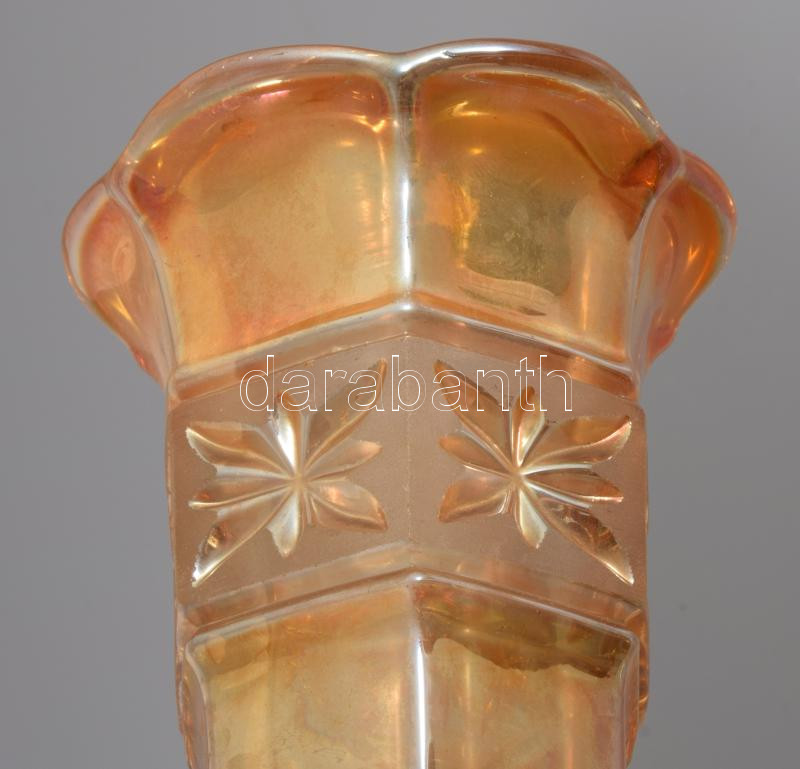 Leírás: Sárga üveg váza. Formába öntött, anyagában színezett hibátlan 21 cm