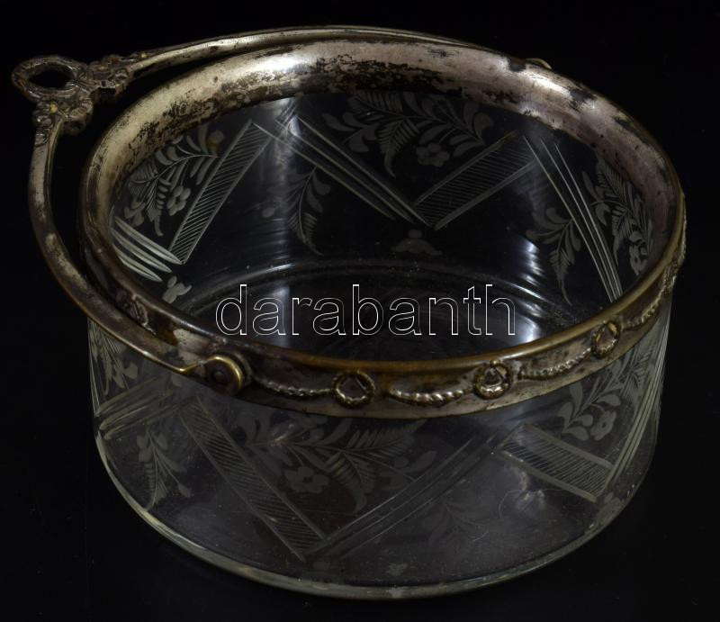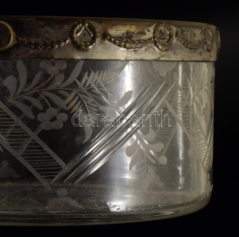 Szecessziós kínáló, csiszolt üveg, fém szerelékkel, d: 12 cm https://www.darabanth.com/hu/515-Filatelia-kepeslap-numizmatika-mutargy-konyv-papirregiseg-ekszer-aukcio/518.0/Porcelan-keramia-uveg/Uvegtargyak~1074/Szecesszios-kinalo-csiszolt-uveg-fem-szerelekkel-d-12-cm~II3488920