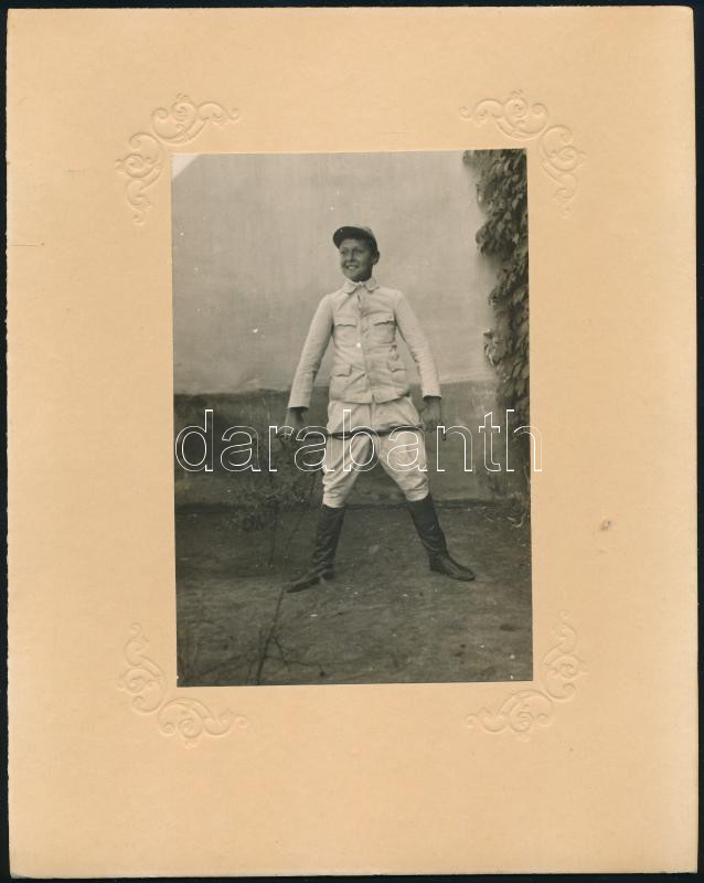 Leírás: 1936 Lovaspólózó fiú, kartonra kasírozott fotó, a hátoldalon feliratozva, 15,5x10,5 cm, karton: 25,5x20,5 cm