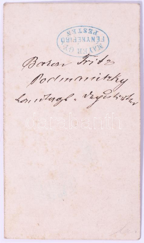 ca 1860 Podmanini és aszódi báró Podmaniczky Frigyes (1824-1907) író, politikus, Fővárosi Közmunkák Tanácsának alelnökről készült vizitkátya méretű fotó korabeli feliratozással 6x9,5 cm