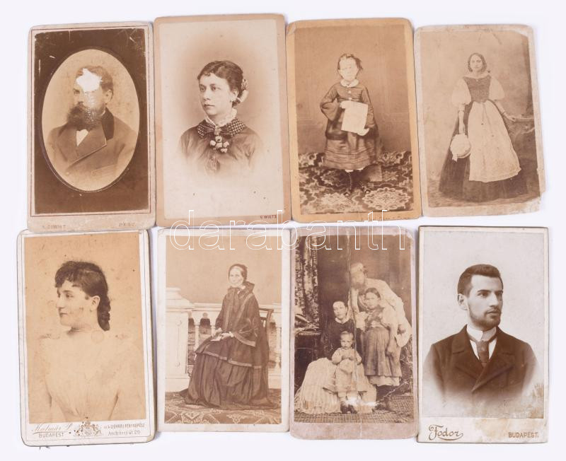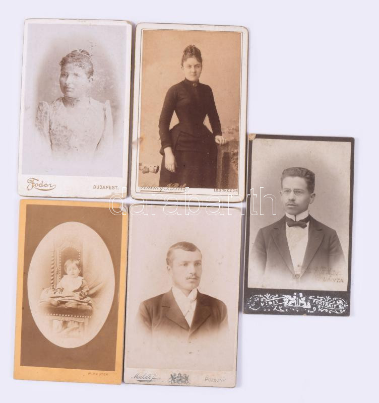 Leírás: cca 1870-1915 Vegyes keményhátú fotó tétel, közte szecessziós hátlap, vadászportré, 10,5×6,5 és 16,5×22,5 cm
