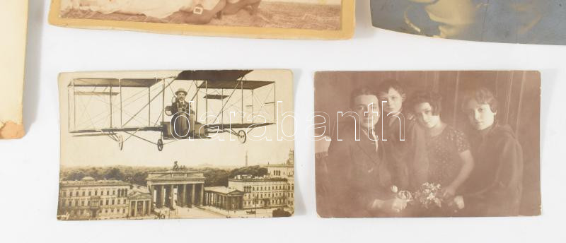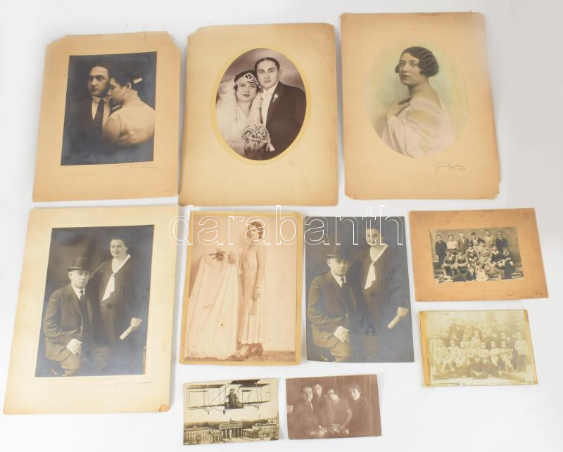 Leírás: cca 1910-1930 Vegyes fotó tétel, közte katonai csoportkép, nagyméretű portrék, fotólapok, összesen 10 db, változó állapotban, 8,5x14 cm és 36x27 cm között