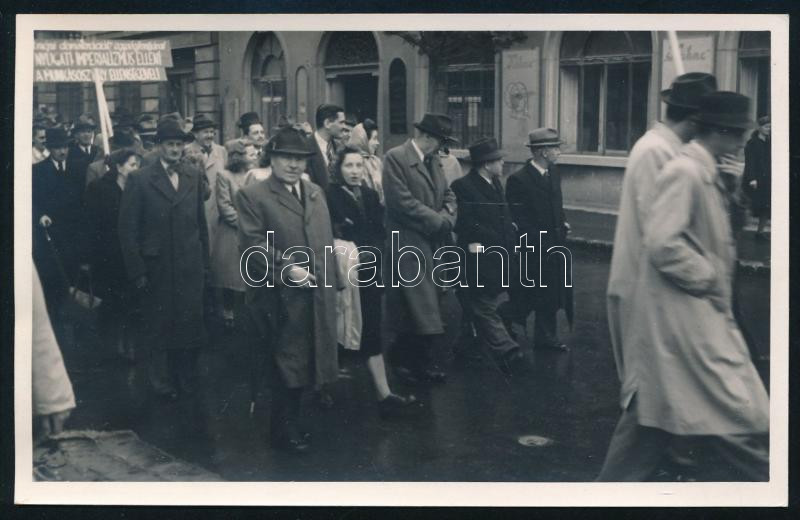 cca 1950 Népi demokratikus felvonulás Győrben, fotó Konok Tamás pecsét... https://www.darabanth.com/hu/516-Filatelia-kepeslap-numizmatika-mutargy-konyv-papirregiseg-ekszer-aukcio/520.0/Fotomuveszet/Foto~1053/cca-1950-Nepi-demokratikus-felvonulas-Gyorben-foto-Konok-Tamas-pecsetjevel-8-5x13-5-cm~II3502130