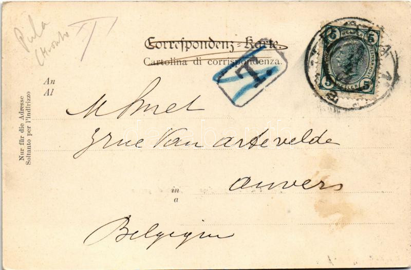 Leírás: 1904 Pola, K.u.k. Kriegsmarine Kriegshafen / Osztrák-magyar haditengerészet kikötője / Austro-Hungarian Navy port. M. Clapos (EK)