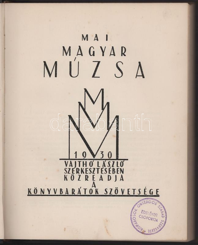Mai Magyar Múzsa. Szerk.: Vajthó László. Bp., 1930, Könyvbarátok Szöve... https://www.darabanth.com/hu/516-Filatelia-kepeslap-numizmatika-mutargy-konyv-papirregiseg-ekszer-aukcio/520.0/Konyvek/Konyvek-Egyeb-ritkasagok~1106/Mai-Magyar-Muzsa-Szerk-Vajtho-Laszlo-Bp-1930-Konyvbaratok-Szovetsege-175plus1-p-Kiadoi~II3502307