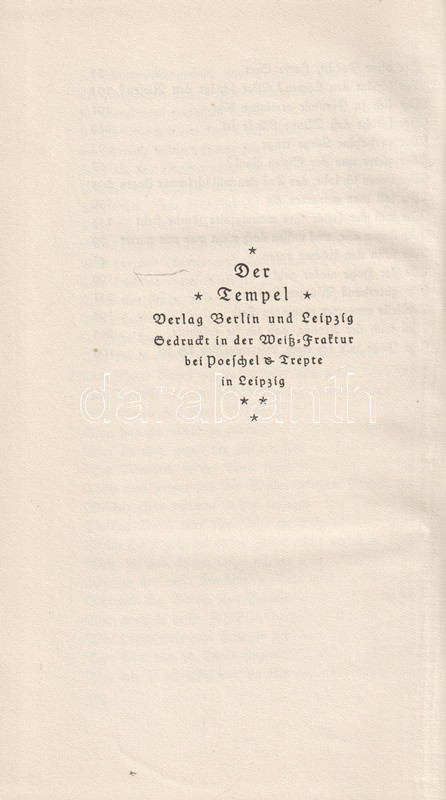Berlin, [1926]. Der Tempel-Verlag (Gedruckt bei Poeschel & Trepte, Leipzig). [8] + 334 + [2] p. Egyetlen kiadás.