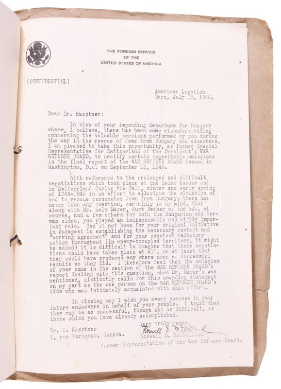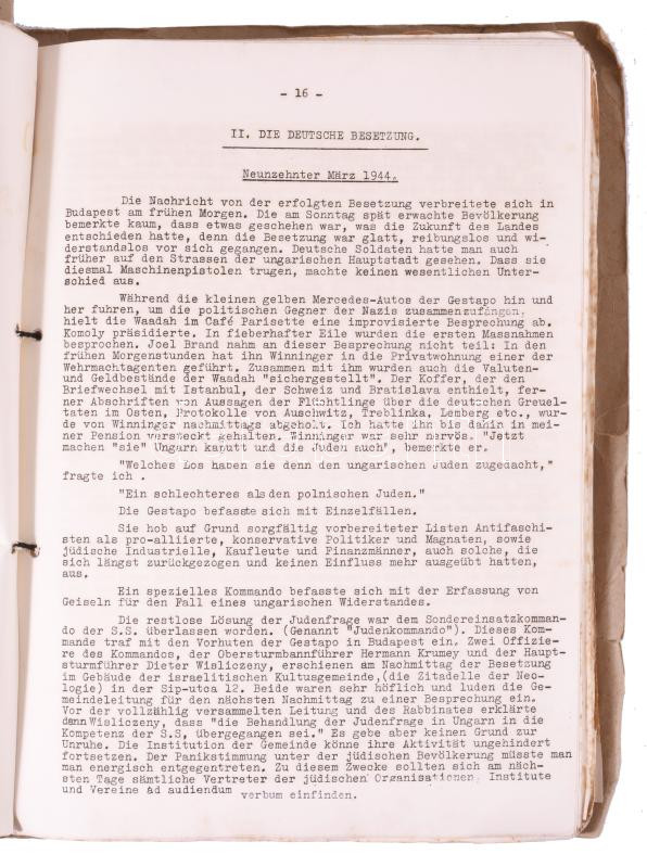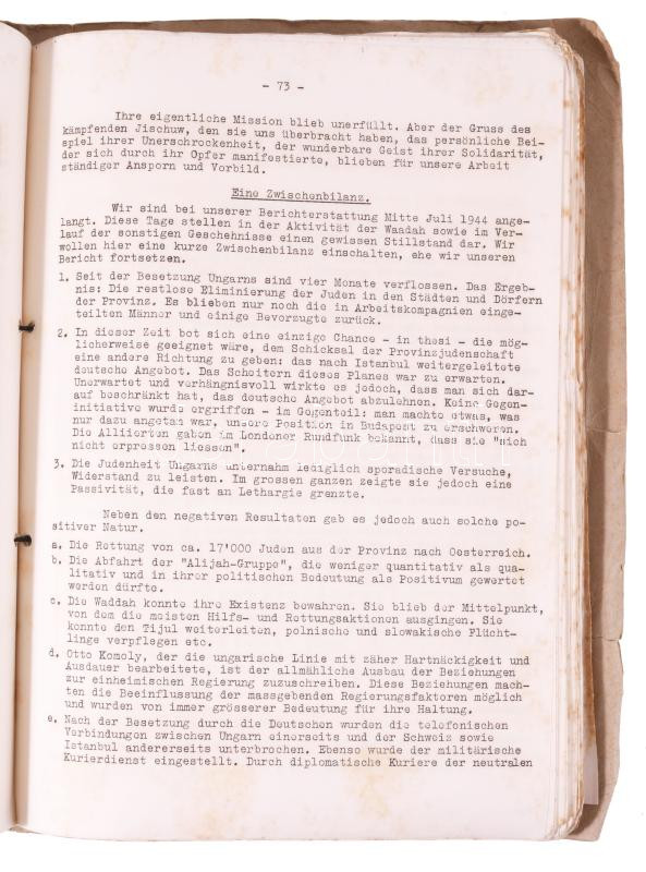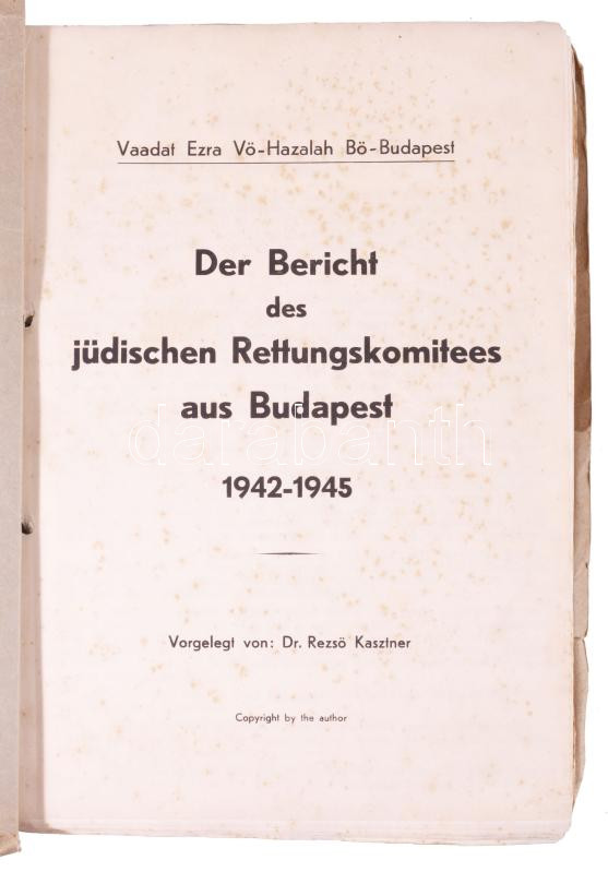 A magyarországi és egyben az egyetemes holokauszt-irodalom egyik legjelentősebb műve, egy fővárosi zsidó szervezet, a Budapesti Segélyező és Mentőbizottság (Va?adat) jelentése. Összeállítója a szervezet felelős vezetője volt a második világháború alatt. Ő képviselte a Mentőbizottságot az Andreas Ernst Kurt Becher SS ezredessel, Adolf Eichmann megbízottjával folytatott tárgyalásokon. Személyes sikere, hogy a németek egy vasúti szerelvényt Auschwitz helyett Svájcba küldtek. A később ?Kasztner vonata? néven emlegetett akció következtében majd? 2000 fő menekült meg a haláltáborból. Egyes források szerint Kasztner további 20 ezer zsidót mentett meg Magyarországon.