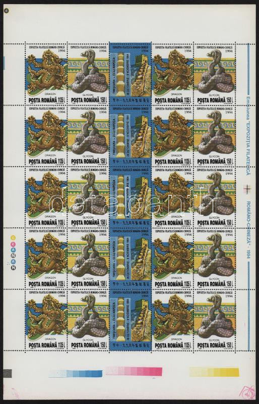 1994 Bélyegkiállítás Kína-Románia ötöscsík Mi 5038-5039 https://www.darabanth.com/hu/516-Filatelia-kepeslap-numizmatika-mutargy-konyv-papirregiseg-ekszer-aukcio/520.0/Kulfoldi-filatelia-es-postatortenet/Romania~490/1994-Belyegkiallitas-Kina-Romania-otoscsik-Mi-5038-5039~II3502358