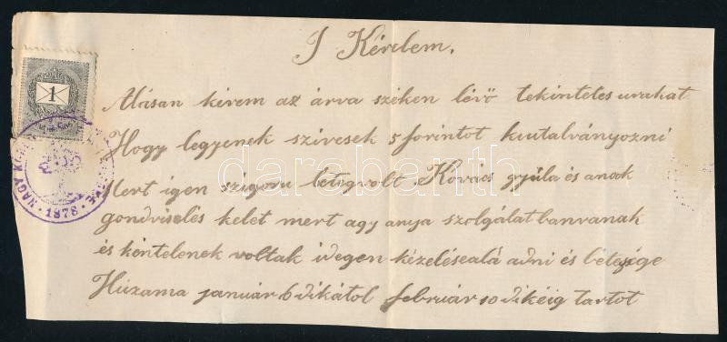 ~1890 Kérvény okmánybélyeg helyett I. tipusú 1kr postabélyeggel