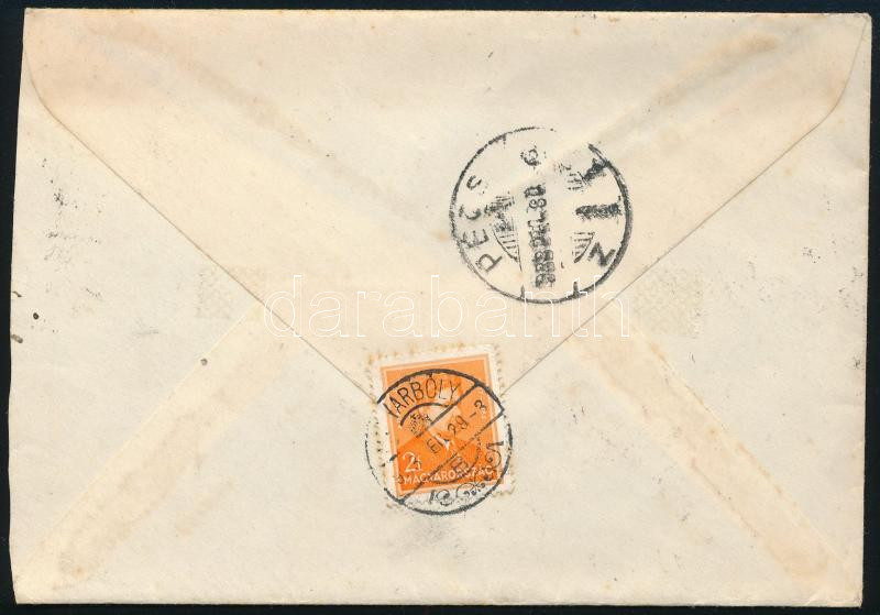 1933 Levél bélyeghiány miatt 28f portóval, hátoldalon Arcképek 2f bélyeg