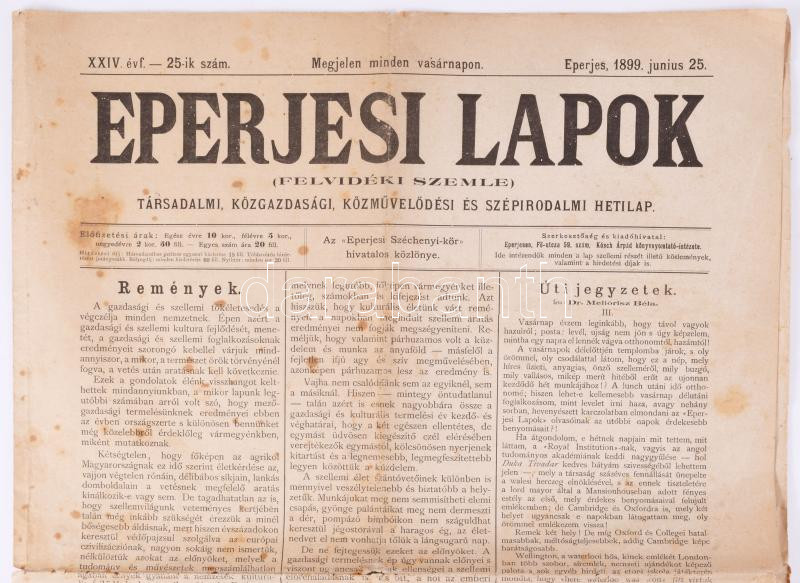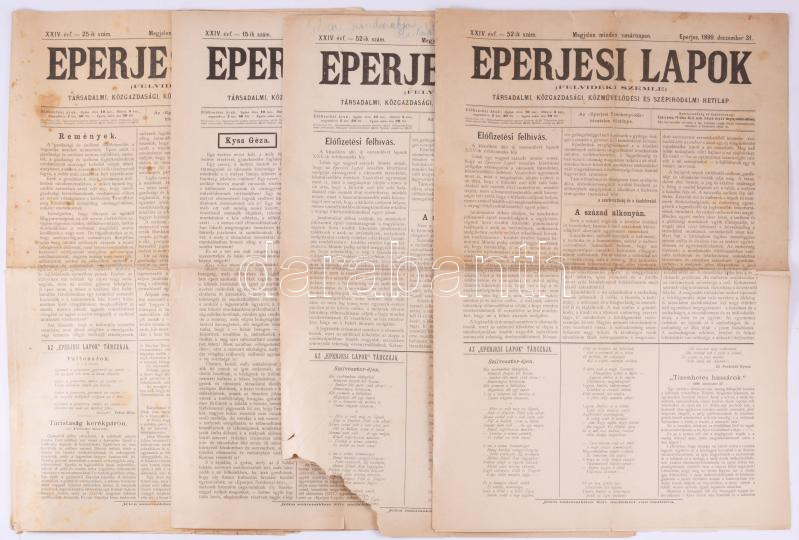 1899 Eperjes, az Eperjesi Lapok (Felvidéki Szemle) XXIV. évfolyamának 4 db száma