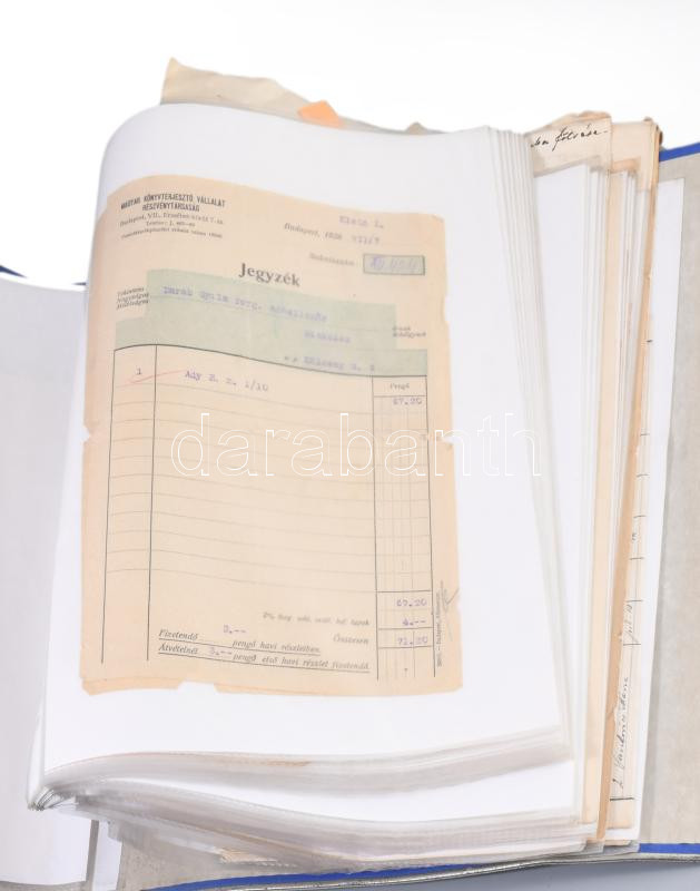 Leírás: ca 1910-1940 Kb 40 darabos okmány gyűjtemény, benne számlák, reklámok, igazolványok, családi okmányok, stb gyűrűs berakóban.