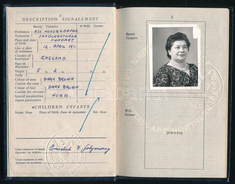 1963 London, Brit Királyság által kiállított fényképes útlevél Solymos... https://www.darabanth.com/hu/516-Filatelia-kepeslap-numizmatika-mutargy-konyv-papirregiseg-ekszer-aukcio/520.0/Mutargy-papirregiseg-egyeb/Okmanyok~1049/1963-London-Brit-Kiralysag-altal-kiallitott-fenykepes-utlevel-Solymossy-Erzsebet-szamara-~II3503540
