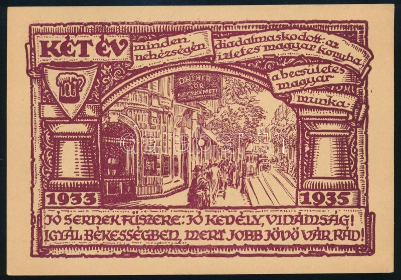 Leírás: 1935 A Kecskeméti Söröző, Budapest kecskeméti u. 14., tulajdonos Kollár Anna reklámnyomtatványa, szép állapotban, 12×17 cm