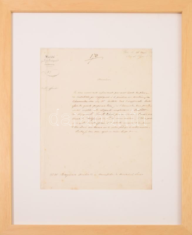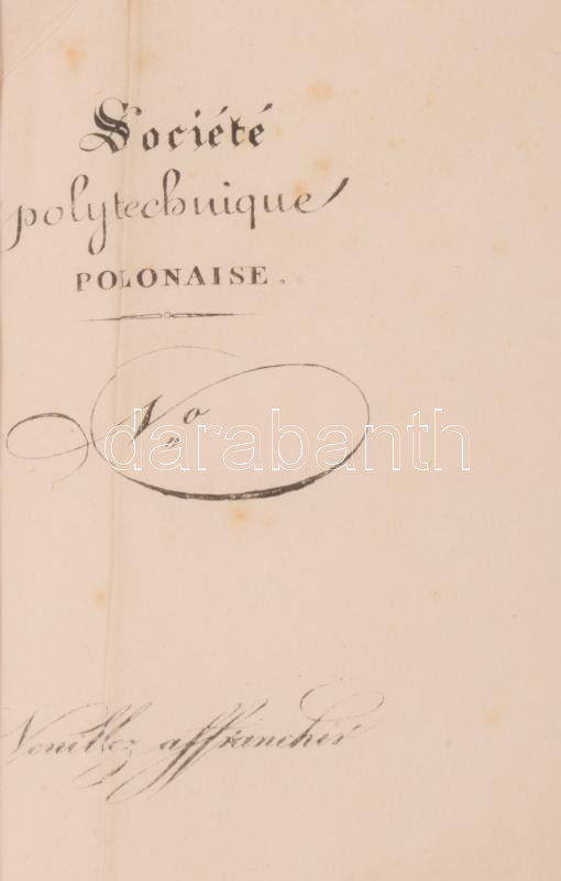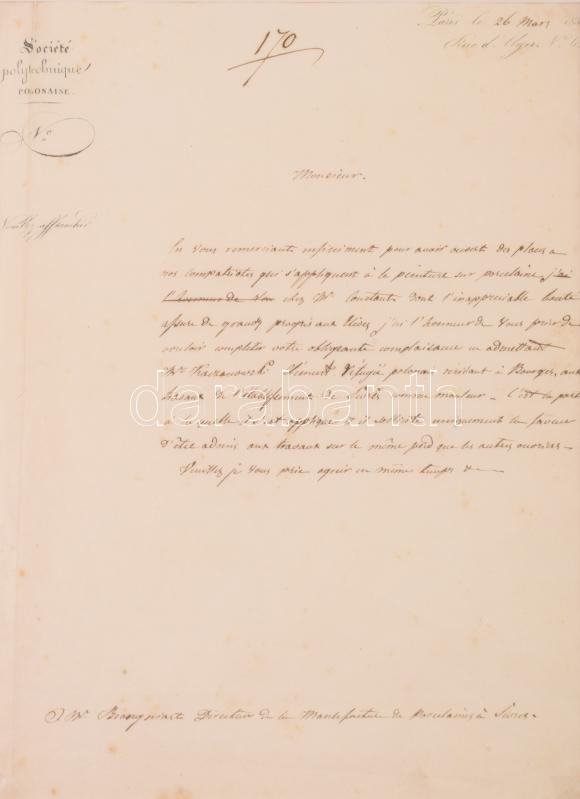 1835 Bem József / Jozef Zachariasz Bem (1794-1850) lengyel származású magyar honvéd altábornagy, majd oszmán pasa, "a székelyek Bem apója". francia nyelvű, másfél oldal terjedelmű, autográf levele 1835-ből a Société Polytechnique Poloniae igazgatójaként, a társaság fejlécés papírján.