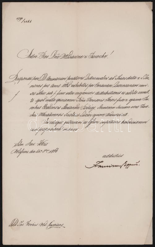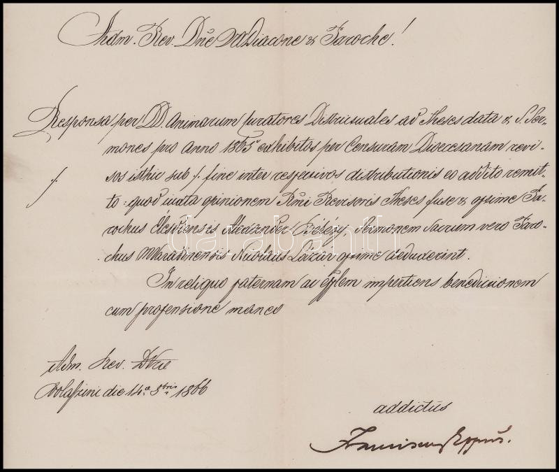 1866 Nagyvárad, Szaniszló Ferenc (1792-1869) váradi püspök aláírása egy egyházi dokumentumon