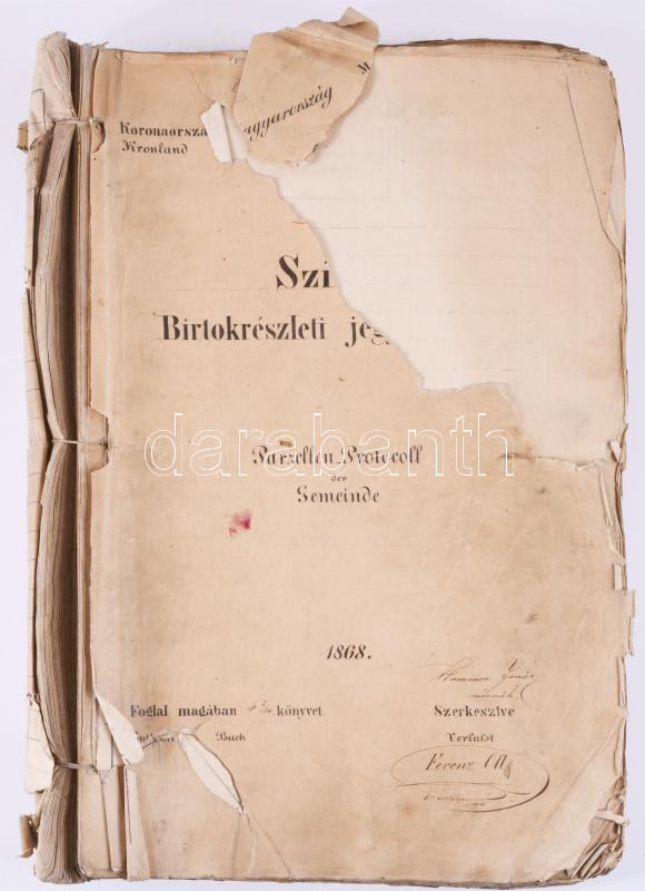 1868 Borsod megye, Szikszó mezőváros Birtokrészleti jegyzőkönyv a földtulajdonosok neveivel. 197 oldalon Helytörténeti kuriózum.