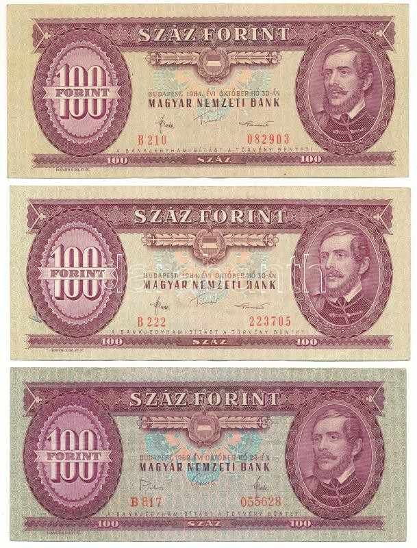 1968. 100Ft + 1984. 100Ft (2x, egyik enyhén eltolódott nyomat) T:F közte szép papír