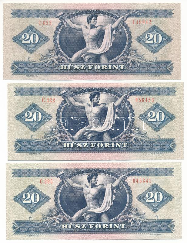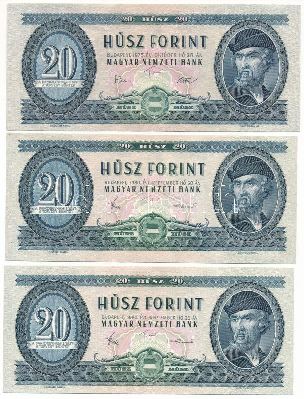 1975. 20Ft + 1980. 20Ft (2x) T:AU,XF hullámos papír