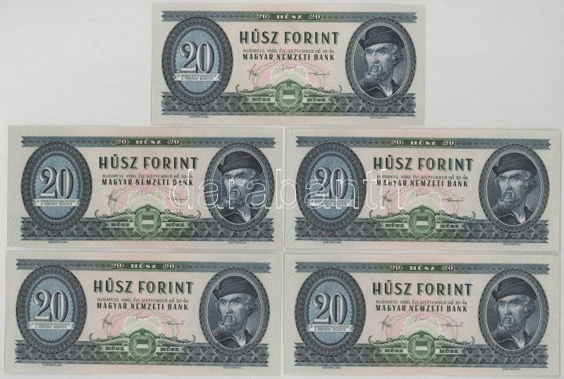 1980. 20Ft (5x) T:AU,XF hullámos papír