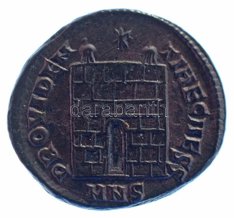 Roman Empire 325-326 / Constantius II / Nicomedia / Follis bronze "FL IVL CONSTANTIVS NOB C / PROVIDEN-TIAE CAES - MNS" campgate with seven layers, two turrets, star above, no doors (3,02g) C:XF ding