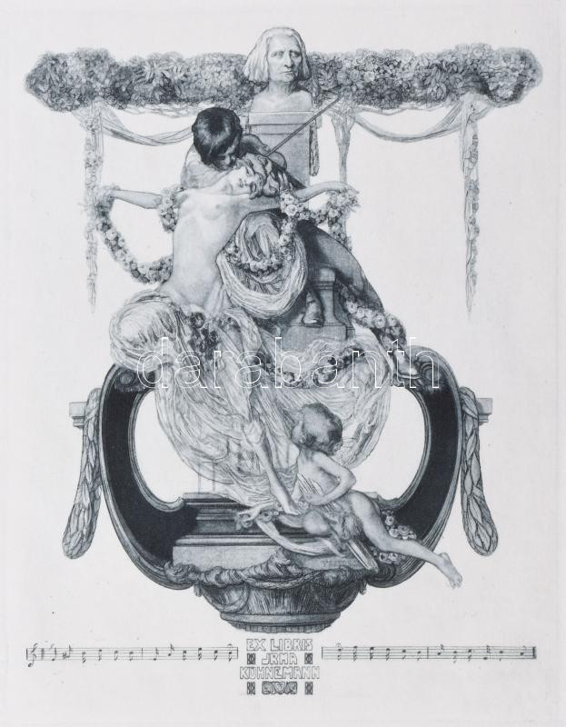 Franz von Bayros (1866-1924): Ex libris Irma Kühnemann. Heliogravür, papír, jelzett a nyomaton. 12x9 cm
