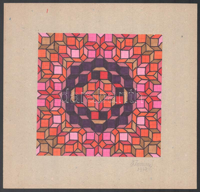 Leírás: Koppány Frigyes (?-?): Variációk egy témára IV, 1978. Filctoll, papír, jelzett, kartonra kasírozva. 15x15 cm